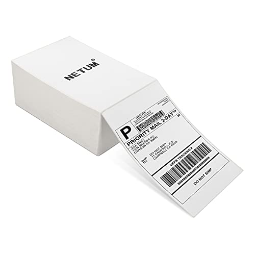 NETUM 4" x 6" Fan-fold Direct Thermal Labels - White Shipping Mailing Postage Labels, Perforated, Permanent Adhesive(1 Stacks - 500 Labels) (Thermal fanfold Label 4 X 6)