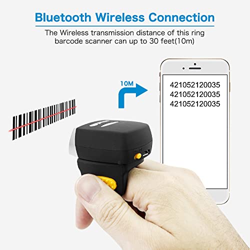 NetumScan - Lettore di Codici a Barre Bluetooth ad Anello Indossabile Mini 1D CCD a Barre Scanner per Computer di Pagamento Mobile, Supporto per POS/Android/iOS/Mac/Windows/Linux/Ipad System NSR3