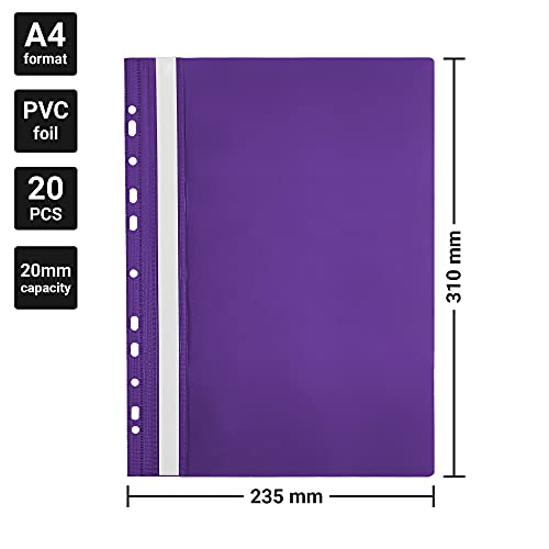 Netuno 20 cartelline colorate trasparenti viola formato A4 210x 297 mm buste trasparenti anelli a4 colorate con strisce scrivibile buste forate copertine trasparenti