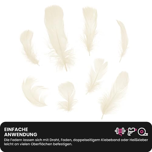 Netuno 150 Pezzi Piume Decorative Ecru 10g Piume Naturali Colorate Piume di Uccelli per acchiappasogni Decorazione Nozze Matrimonio Battesimo Prima Comunione Natale Pasqua Costumi Orecchini