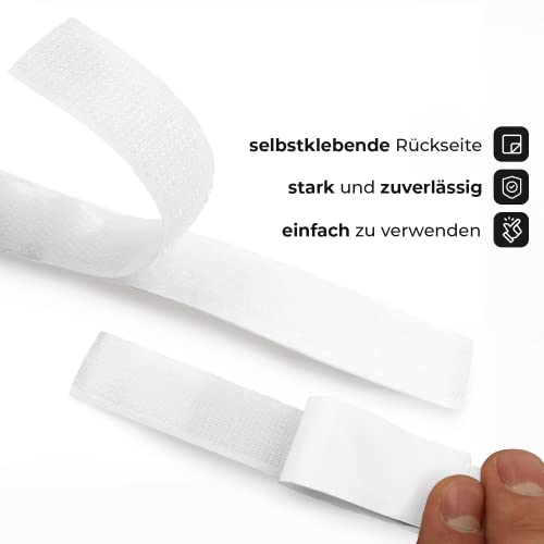 Netuno 2 rotoli di velcro autoadesivo, bianco, 20 mm x 2 m, strisce di velcro biadesive, chiusura rapida, chiusura adesiva, nastro adesivo per pareti, pavimenti, vetro, metallo specchio