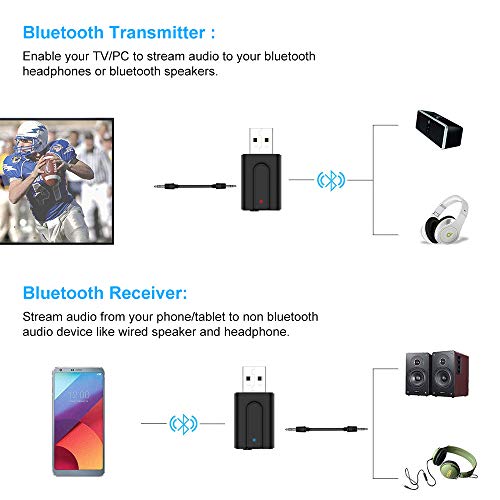 NETVIP Bluetooth Trasmettitore Ricevitore USB Adattatore 2 in 1 Bluetooth Trasmettitore Ricevitore Mini USB Bluetooth 5.0 Wireless Audio con Cavo Audio Digitale da 3,5mm per TV/PC/Auto/ MP3/MP4