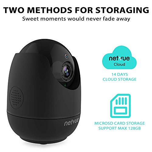 NETVUE IP Camera, 720P HD Wireless Home Cam Compatibile con Alexa Echo Show, sicurezza fotocamera WiFi con pan/tilt/Zoom, Audio a Due Vie, Visione notturna, Baby/Elder/Pet/Nanny Monitor, Nero