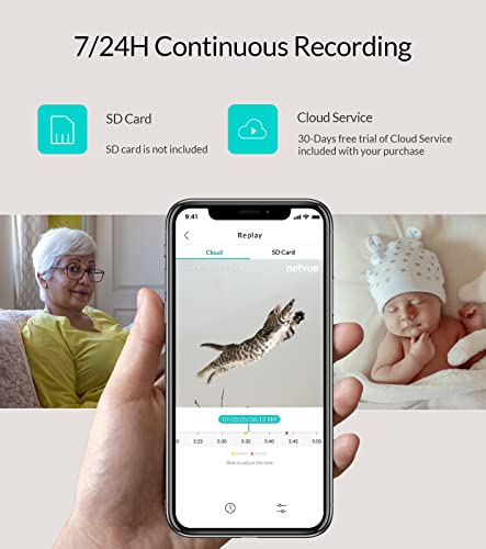 【 HD Wide View & IR visione notturna 】: Netvue 1080P Wlan Baby phone fotocamera con 3,6 mm HD Len & 120 gradi grandangolo & 10 X IR LED & 8 X Digital Zoom funzionalità offre una chiara foto / video giorno e notte. La IP cam si spegne automaticamente dalla modalità normale a visione notturna, range fino a 32 piedi. Perfetto per casa e baby phone notte.