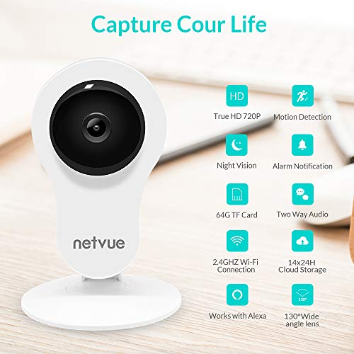 NETVUE Telecamera Sorveglianza Wifi 720P, compatibile con Alexa Echo Dimostrano Videocamera Sorveglianza Interno con 2 Vie Talk rilevatore di movimento 7 X 24H Cloud di memoria