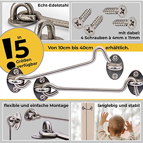 Neuhall - Gancio per porta da giardino, 21,5 cm, con occhielli, in acciaio inox, per porta scorrevole, giardino, porta del garage, porta del fienile, gancio di fissaggio