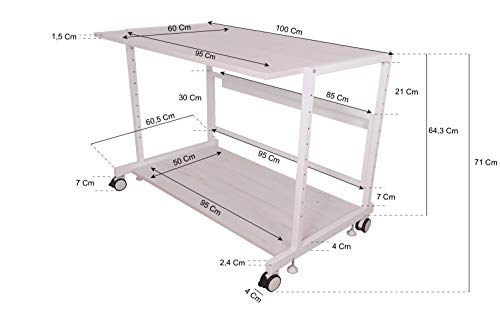 NEUN WELTEN Grande Scaffale di Legno per Stampante 100 x 60 x 70 cm (L x L x A), Mobile Tavolo Porta PC Scaffale Regolabile (Model 2)