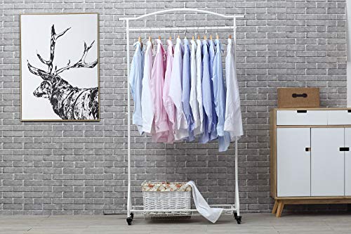 NEUN WELTEN Stand Appendiabiti con Arco superiore e Ripiano a Cesto Portaoggetti e Ruote 100 x 34 x 169 cm (Bianco)