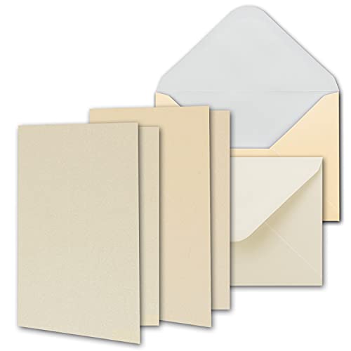 Neuser, Gustav C-Line, set di biglietti di invito con buste, a effetto madreperla, in 2 differenti toni pastello e crema, di formato DIN A6 50 pezzi crema