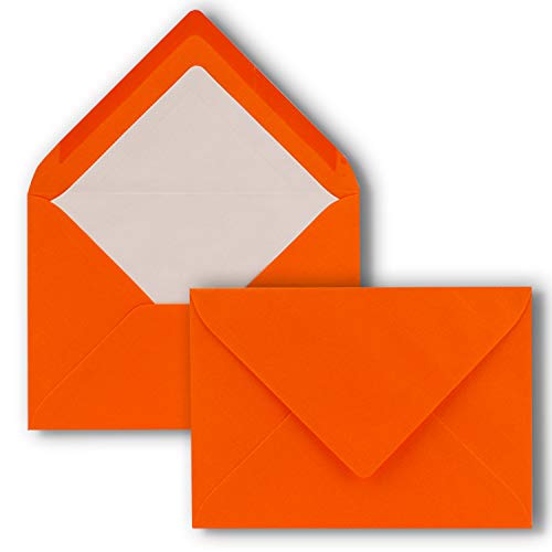 Confezione di biglietti DIN A6/C6, arancione, struttura a coste, buste con fodera in seta bianca, colore abbinato ai biglietti