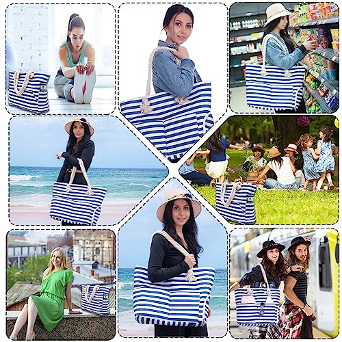 Neusky Borsa da spiaggia extra grande, pieghevole, per famiglia, vacanze, bagno, shopper da viaggio, picnic, Strisce blu