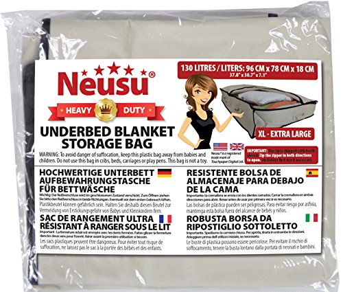 125 cm x 80 cm x 18 cm (borsa Jumbo XXL più grande disponibile) si adatta a più piumini fino a king size e molto altro ancora: i lati sono in tessuto resistente, ma non rigido, quindi possono essere schiacciati per adattarsi più facilmente sotto i letti