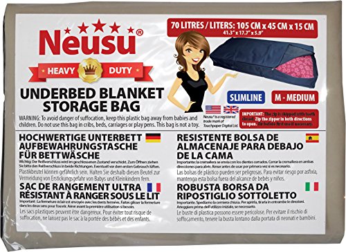 Dimensioni medie per piumino singolo o piumone doppio di peso medio, cuscini o vestiti e i lati sono in tessuto resistente, ma non rigido, quindi possono essere schiacciati per adattarsi più facilmente sotto i letti