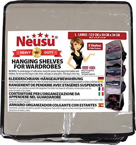 Neusu Contenitore Per L'organizzazione Da Appendere Nel Guardaroba - 8 Ripiani Più 8 Tasche Laterali - Stoffa Robusta 600D - 30cm x 30cm x 125cm (100+ lt. di volume)