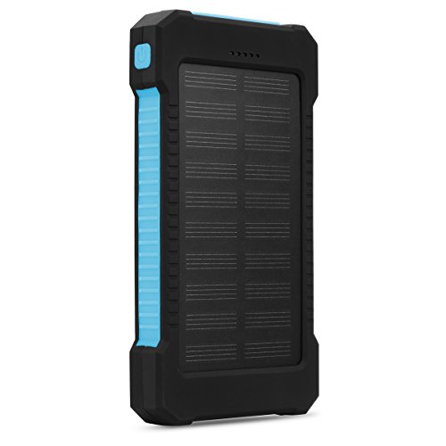 Neutral - Powerbank a energia Solare, 10000 mAh, Impermeabile, con Caricatore Solare, con Lampada a LED Dual USB per cellulari e Tablet, Blu