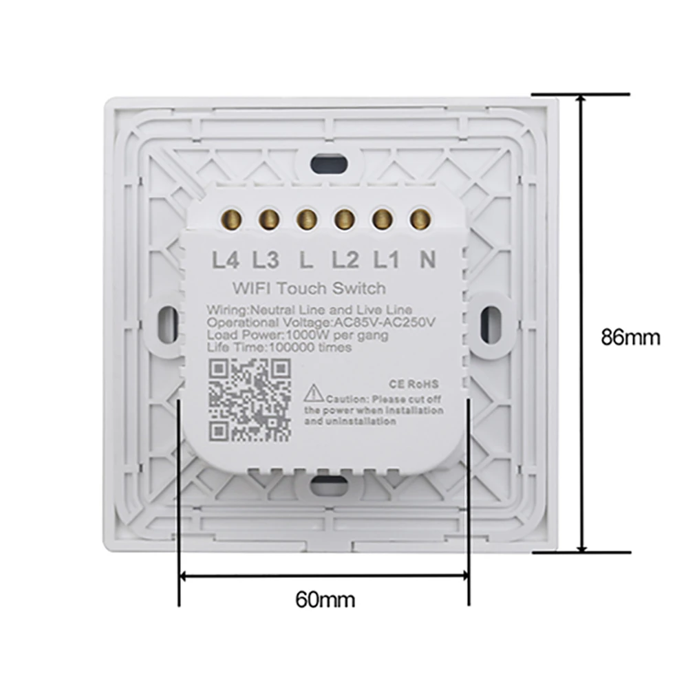 No Neutral WIFI Touch Light Wall Switch White Glass Blue LED TUYA Smart Home Phone 2Way/3Way For Alexa Google Home Alice