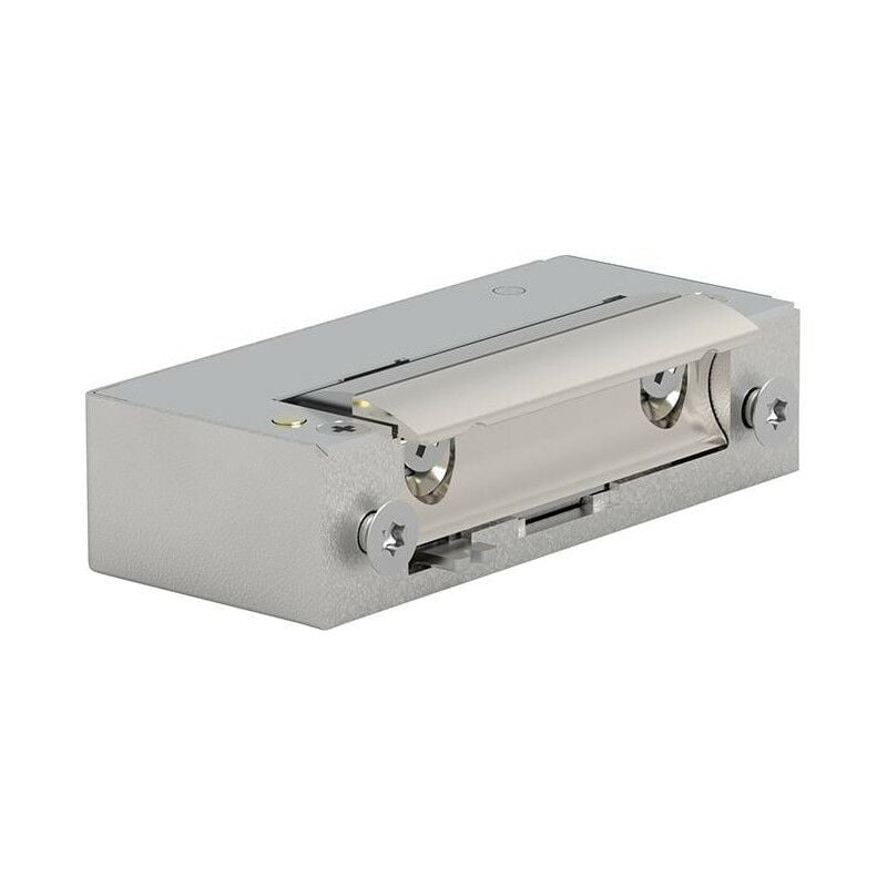 Apertura elettrica 5U1X10 - Corrente di funzionamento con sblocco meccanico - Scrocco regolabile 3 mm - Tensione nominale 9-24 V DC/contatto momentaneo WC - Energia continua 11-13 V DC - Con diodo di protezione elettrica - Utilizzabile DIN destra/sinistra - Forza di apertura 4.800 N - Può essere installato in profili di porte molto strette grazie alle sue dimensioni ridotte