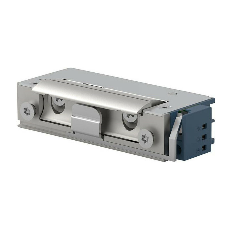 Attacco elettrico 5UF6X10. per porte tagliafuoco - Corrente di funzionamento con contatto di retroazione - Scrocco regolabile 3 mm - Tensione nominale 9-24 V DC/contatto momentaneo WC - Corrente continua 11-13 V DC - Con diodo di protezione elettronico - Installabile DIN sinistra/destra - Carico di rottura 8. 000 N - Può essere installato in profili di porte molto strette grazie alle sue dimensioni ridotte - Approvato per l'uso su porte tagliafuoco