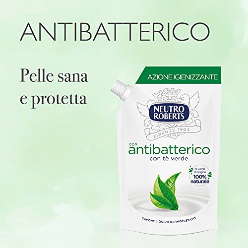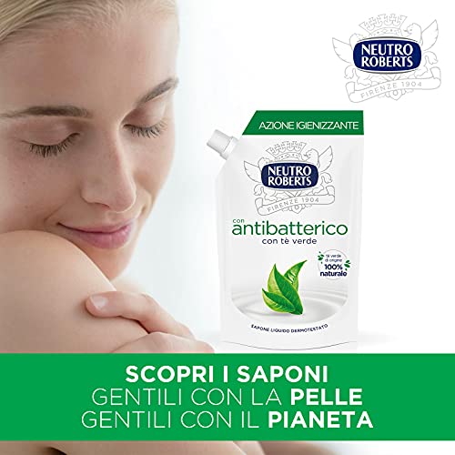 Neutro Roberts, Sapone Liquido Ecopouch Antibatterico, Ecoricarica Ecologica, Pelle Sana e Protetta, Té Verde - Confezione da 12 Pezzi da 400 ml