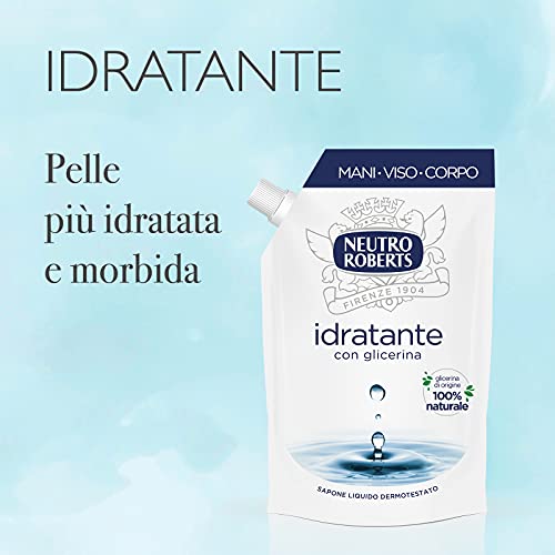 Neutro Roberts Sapone Liquido Ecopouch Idratante Con Glicerina, Ricarica Ecologica di Sapone Liquido per Le Mani, Dermatologicamente Testato, Senza Sapone, 6 Flaconi da 400 ml