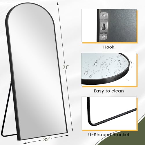 NeuType Specchio ad arco a tutta lunghezza da appendere o appoggiato al muro, grande specchio per camera da letto, specchio da pavimento in lega di alluminio, telaio sottile, nero, 180,3 x 81,3 cm