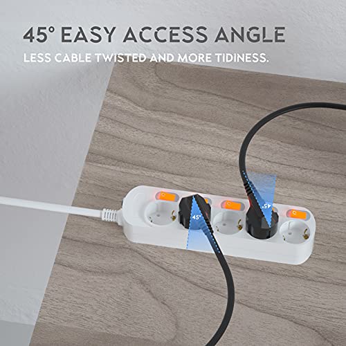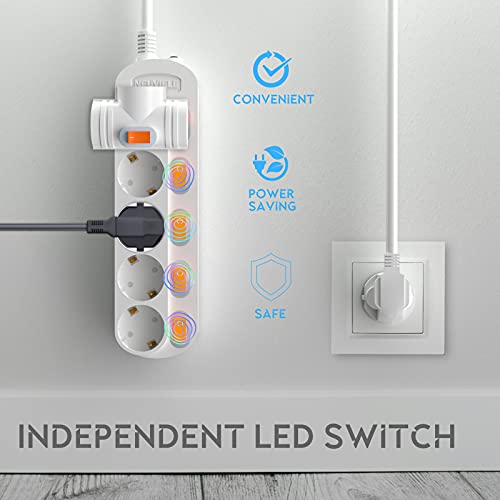 NEUVIELE Presa multipla con interruttore, protezione da sovratensione, 1,5 m, per soggiorno