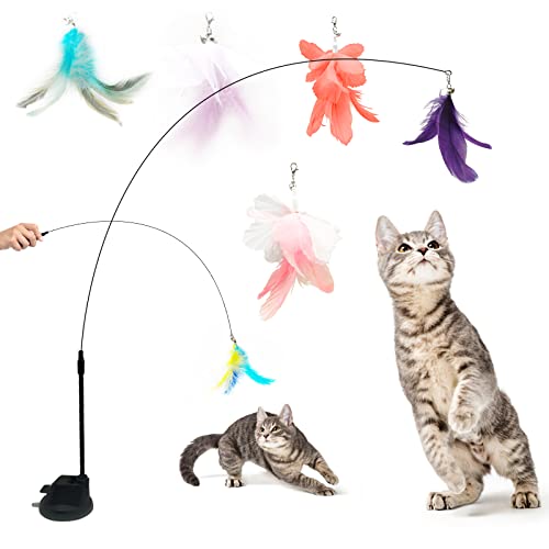 Pacchetto incluso - Il nostro set di giocattoli interattivi con piume da 8 pezzi include 6 diverse piume e 2 bacchette teaser per gatti con 1 ventosa, puoi sostituirlo come preferisci. Questi giocattoli per gatti possono essere utilizzati per periodi di tempo più lunghi.