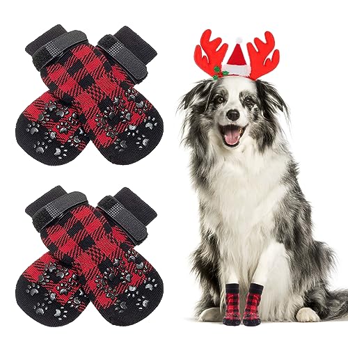 NeuWook Calze per Cani, 4 Pezzi Calzini Antiscivolo per Cani e Gatti, Natale Proteggi Zampe Calzini Controllo trazione per Cani di Taglia Piccola e Media (M)