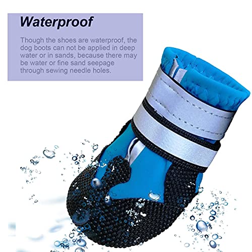 NeuWook Scarpe per Cani, Set di 4 Stivali per Cani Impermeabile con Cinturini Riflettenti, Scarpe Cane con Cinturini Riflettenti e Suola Antiscivolo per Protezione Le Zampe per Cani (XXL, Blu)