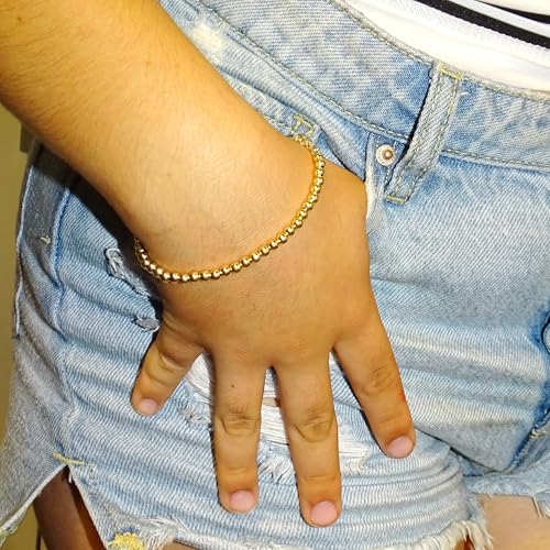 Bellissimo braccialetto di palline in oro giallo da 18 carati, larghezza 4 mm e lunghezza 18 cm. Chiusura a moschettone per la massima sicurezza.