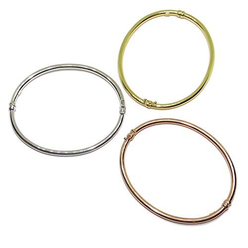18 carati Bracciale in oro giallo per le donne 3 millimetri di larghezza e 62 millimetri rigido interno. 3.65 grammi di oro 18k. Chiudi cliccare con otto sicurezza. molla di apertura e chiusura. tubo cavo tondo in oro 18k, dimensioni interne;
