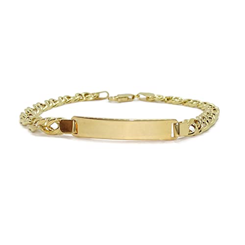 Bracciale da uomo o da cadetto in oro giallo 18 carati con piastra personalizzabile al 100%, lungo 20,50 cm e chiusura a moschettone per la massima sicurezza. Peso: 8,05 gr di oro 18k.