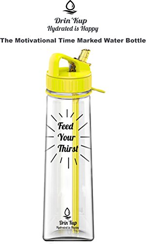 Never Leak plastica senza BPA (900 ml/907,2 gram) - durevole motivazionale Time Marked Water Bottle - a great Sports Water Bottle (borraccia paglia So no Spills) - zero odore o gusti ricaricabile, bottiglia di acqua di plastica Drin 'kup, yellow