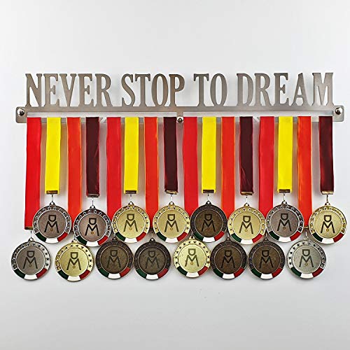 Never Stop TO Dream - Medagliere da Parete - Porta medaglie Motivazionale - Sport Medal Hanger - Display Rack (600 mm x 90 mm x 3 mm)