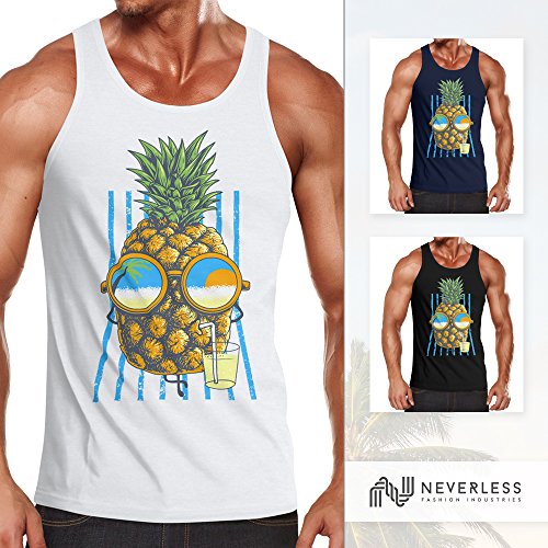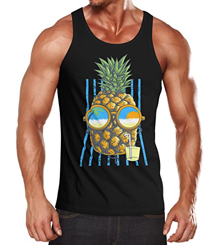 Neverless Canotta da uomo Chilling Ananas Pinapple estate Beach Party Slim Fit Canotta Nero M