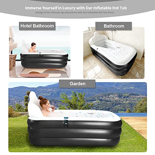 Nevife Vasca gonfiabile gonfiabile con base da bagno, poggiatesta, portabicchieri e tasca portaoggetti, pieghevole e portatile, per spa per adulti, ideale per bagno caldo/bagno di ghiaccio, 160 x 90 x