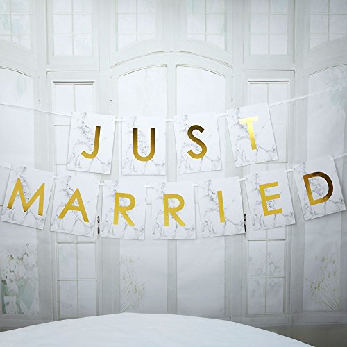 Neviti Bandierine con Scritta Just Married, Carta, Marmo, 250 x 0.1 x 18 cm