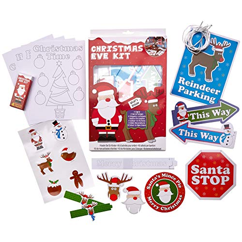 Include: segnali x 4, avvolgi-carota x 2, adesivi x 6, pirottini, decorazioni per vetro con Babbo Natale, renna Rudolph, catene di carta da colorare x 24, immagini da colorare x 4 e pastelli colorati x 4.