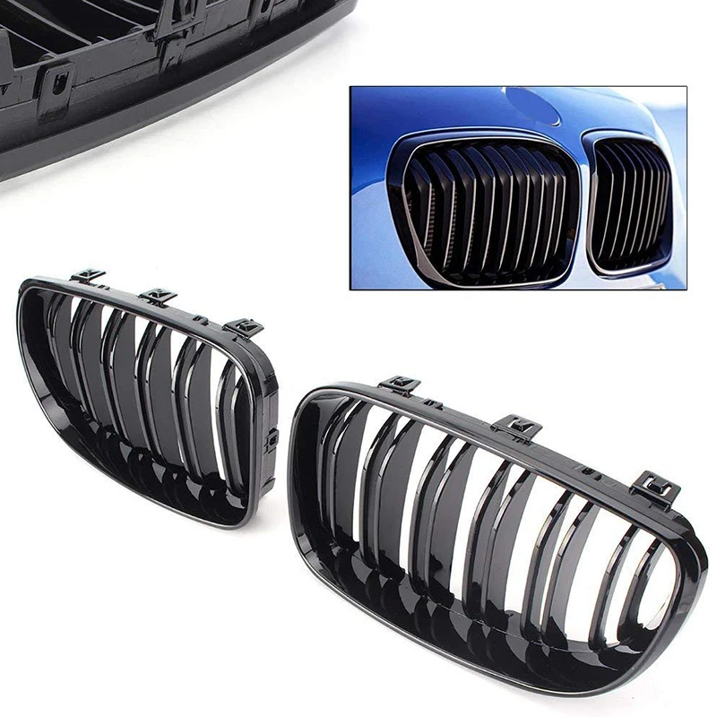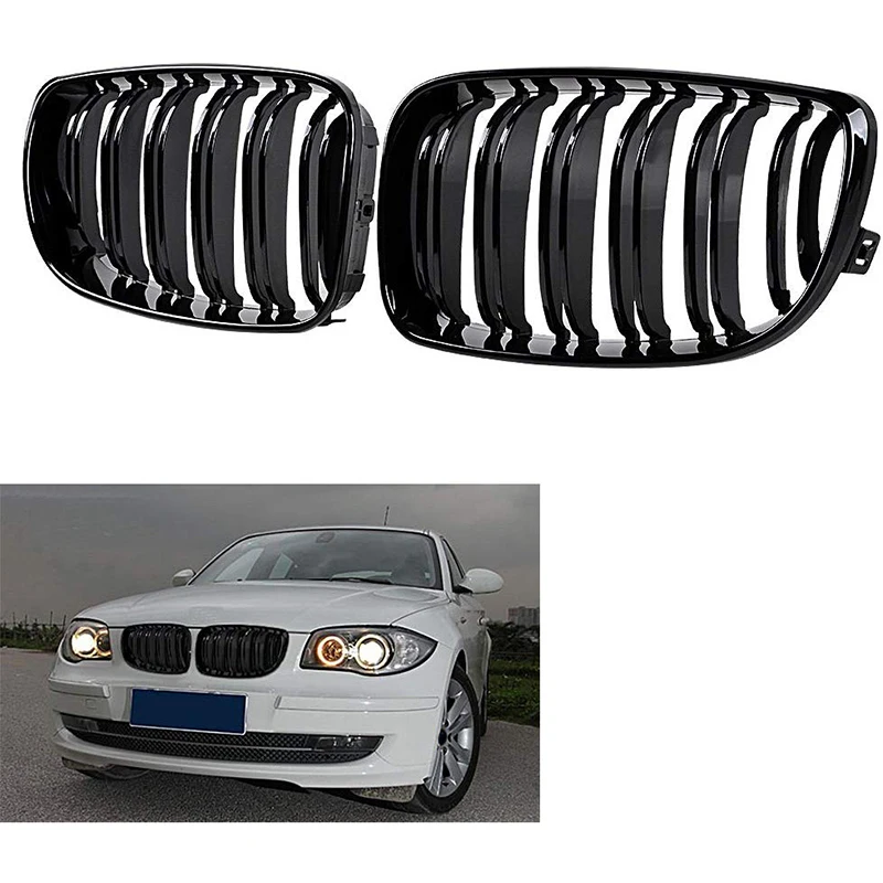 NEW-Glossy Black Dual Slats Front Kidney Grille Grill Replacement for BMW E81 E87 E82 E88 120I 128I 130I 135I Selected 2007-2011