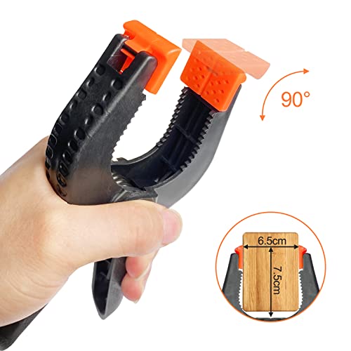 【Mascelle regolabili】 Le ganasce arancioni delle clip a molla sono mobili e possono essere ruotate di 90 gradi per adattarsi a diversi angoli di oggetti, le ganasce piatte non danneggeranno o segneranno la superficie di lavoro, ma eserciteranno molta forza, facile da usare.