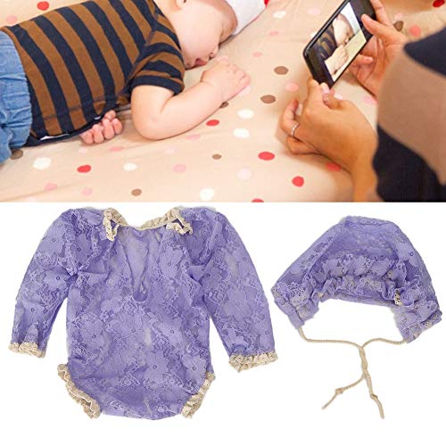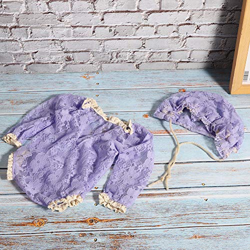 Newborn Photography Wraps Set Tuta elasticizzata riutilizzabile Puntelli per foto Cappello carino Abito in pizzo Costumi per 0-8 settimane Baby(Viola)