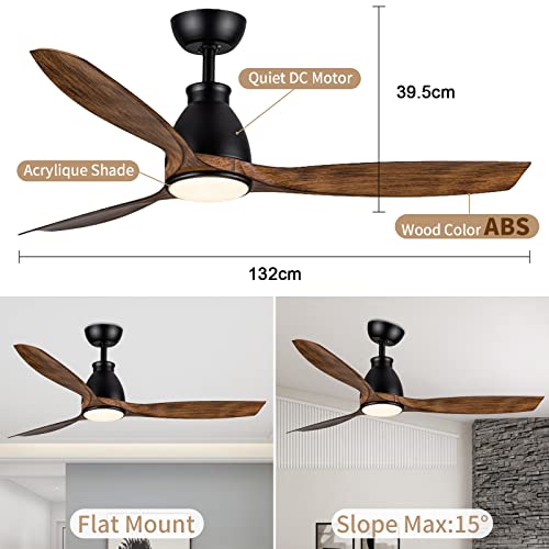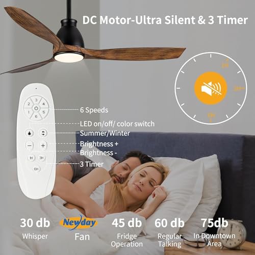 Newday Ceiling Fans with Lamps, Ceiling Fans with Light and Remote Control, Ceiling Fans Quiet Ventilatore Soffitto Motore DC con Luce LED Telecomando Silenzioso,132 cm Ventilatore Soffitto Legno
