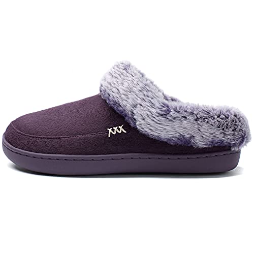 NewDenBer Pantofole Donna Antiscivolo Scarpe Inverno Casa Esterno Peluche Calde Morbido Ciabatte in Memory Foam, 43/44 EU, Viola