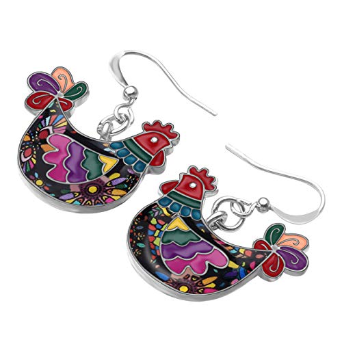 NEWEI Smalto Gallina Pollo Orecchini Pendenti Per Le Donna Bambina Pollo Amante Gioielli Regali Charms (Multicolore)