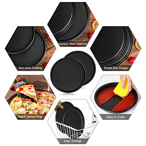 Newellsail Teglia per Pizza Rotonda da Diametro 22cm Padella per Pizza in Acciaio al Carbonio Teglie per Quiche con Rivestimento Antiaderente Teglia per Torta di Formaggio 2 Pezzi