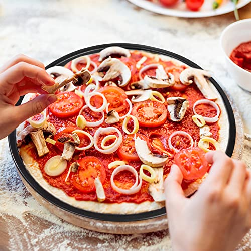 Ampie applicazioni: la teglia rotonda è adatta per cuocere pizza, pizza fatta in casa o riscaldare la pizza rimanente, crosta croccante al forno e ideale per vari prodotti da forno, come torte salate, torte di frutta, torte, frittelle, biscotti, funziona bene anche come servizio di cibo pentole alla festa.