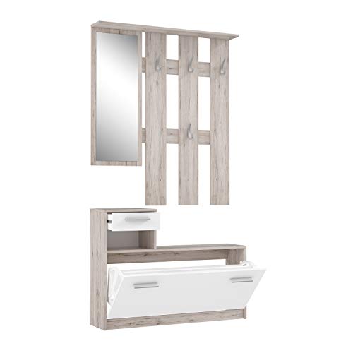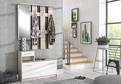 Nonostante le dimensioni ridotte, assicura ampio spazio per gli oggetti importanti: 4 appendiabiti per le giacche, 1 sportello con scomparto per le scarpe e 1 cassetto per gli effetti personali (ad es, Chiavi, pettine, ecc)