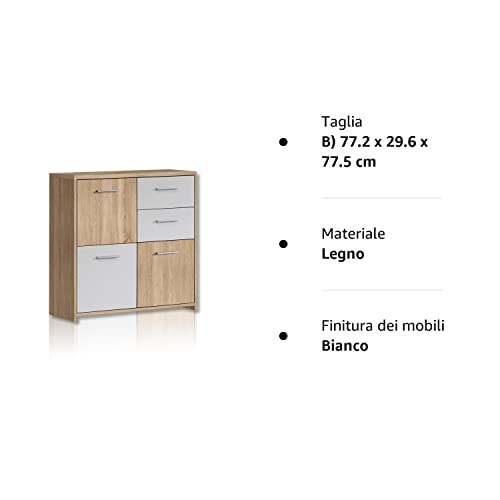 NEWFACE Forte Quadro Cassettone con 3 Ante e 2 cassetti, in Legno derivato, Rovere Sonoma e Bianco, 77,2 x 29,6 x 77,5 cm