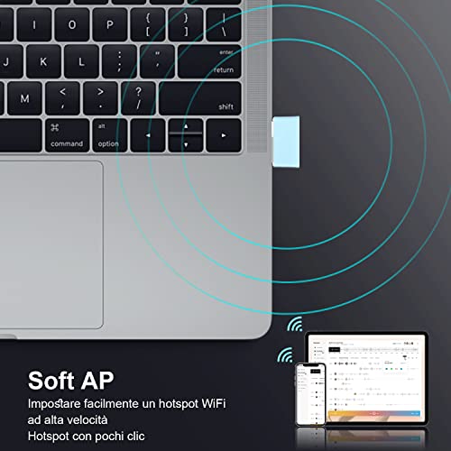 【Design nano, plug & play】Chiavetta USB WLAN dal design nano, così piccola, con un design facile da usare e antiscivolo che la rende facile da collegare e scollegare. Non richiede l'installazione di driver su CD, è plug and play e facile da usare.
