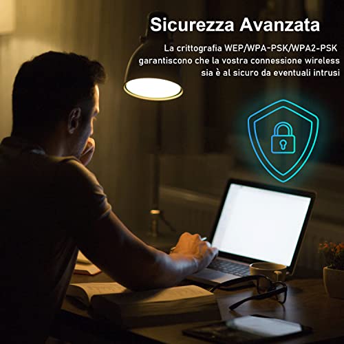 【Sicurezza Wifi】 L'adattatore Wi-Fi USB supporta il protocollo di sicurezza WPA-PSK/WPA2-PSK/WPA/WPA2/WEP. L'adattatore WiFi USB è compatibile con gli standard di rete 802.11b/g/n.